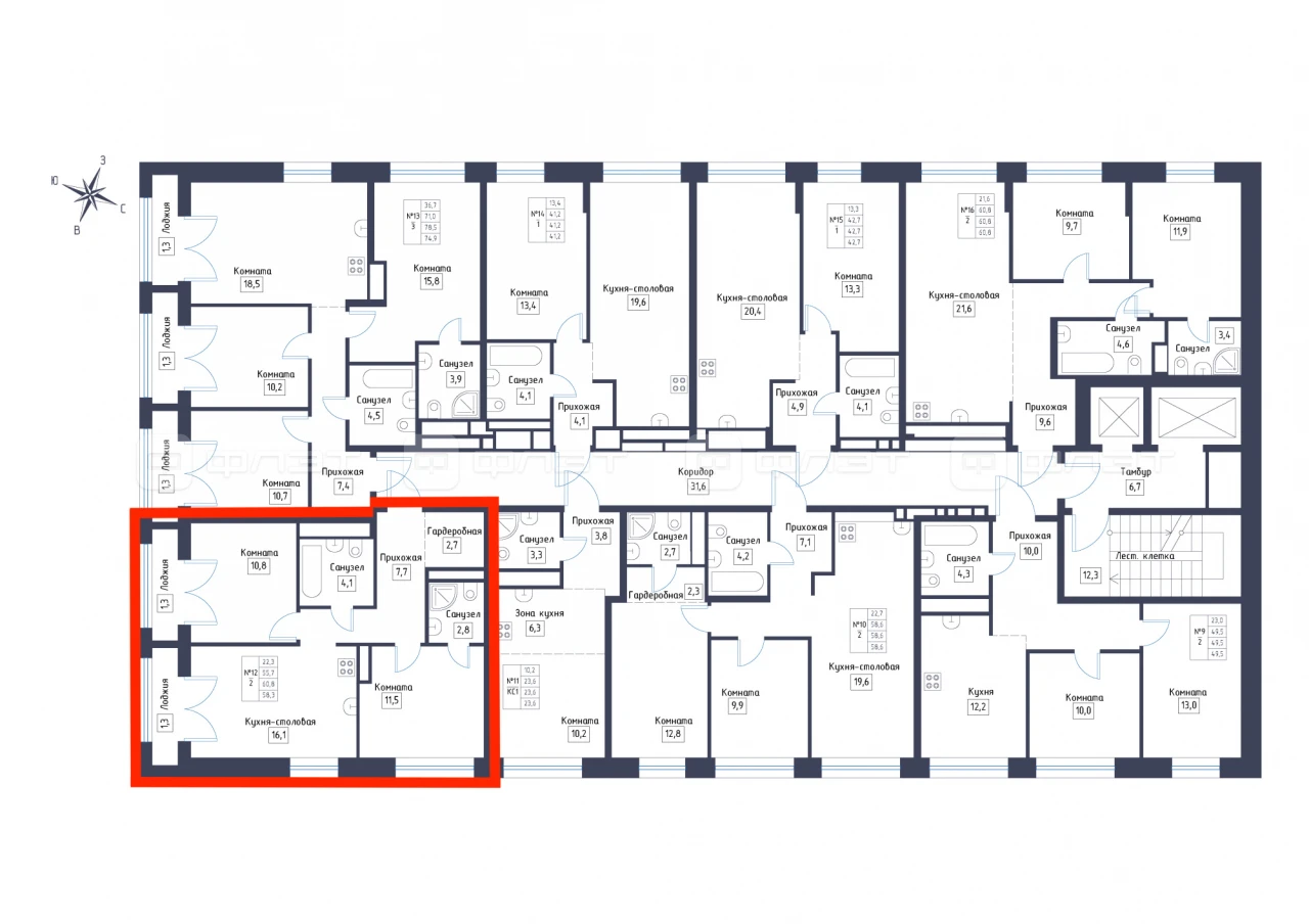 - 58.3/22.3/16.1 м²
